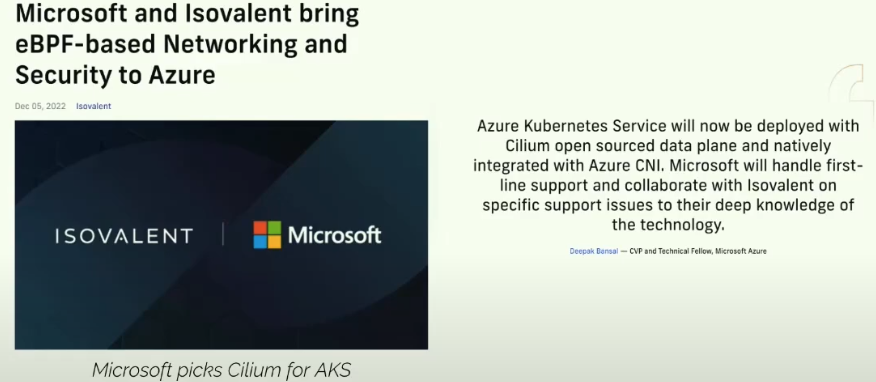 - 실리움에 벤더들이 붙기 시작함. AKS에 cilium 을 사용함.