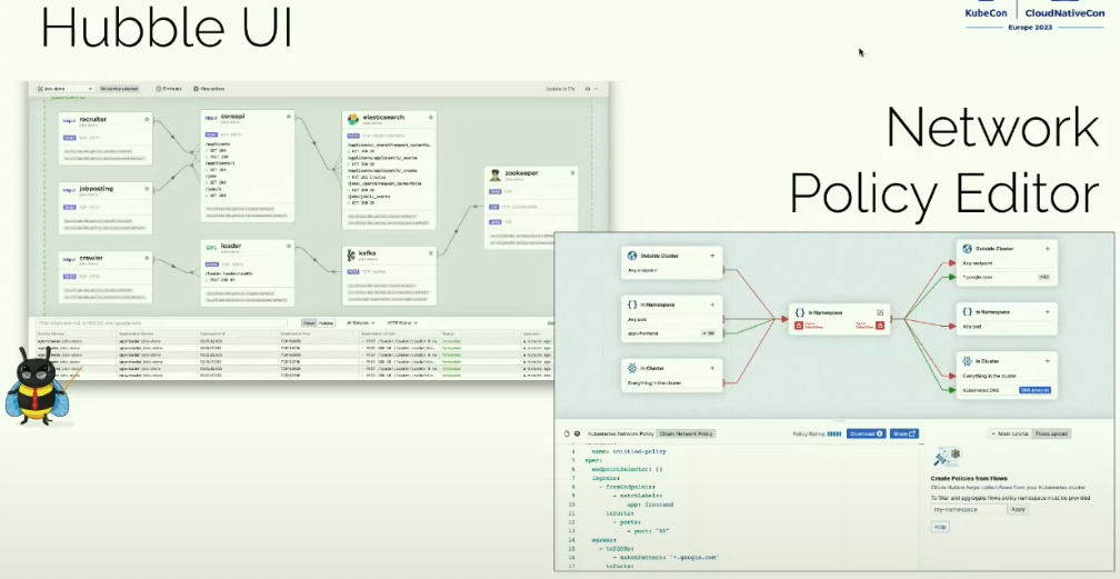 - 허블은 단순히 UI 뿐만 아니라 네트워크 정책 에디터로 정책을 관리하고 시각화 하며 실제 사용할 수 있음.