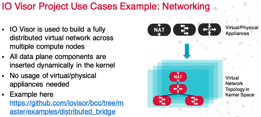 그리고 이러한 방식을 통해 가상/물리적 장비(appliance)없이 모든 데이터플레인 구성 요소가 커널 내에서 동적으로 삽입된다고 한다.